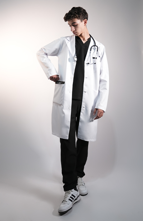 Sa longueur est adaptée à toutes les tailles et morphologies. Elle permet une amplitude et un confort dans les mouvements des professionnels de santé.