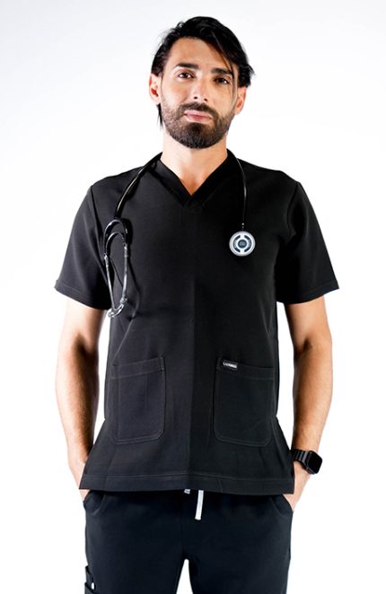 Avec ses détails raffinés et sa coupe ajustée, cette blouse deviendra rapidement un élément essentiel de votre uniforme médical, ajoutant une touche de sophistication à votre tenue quotidienne.